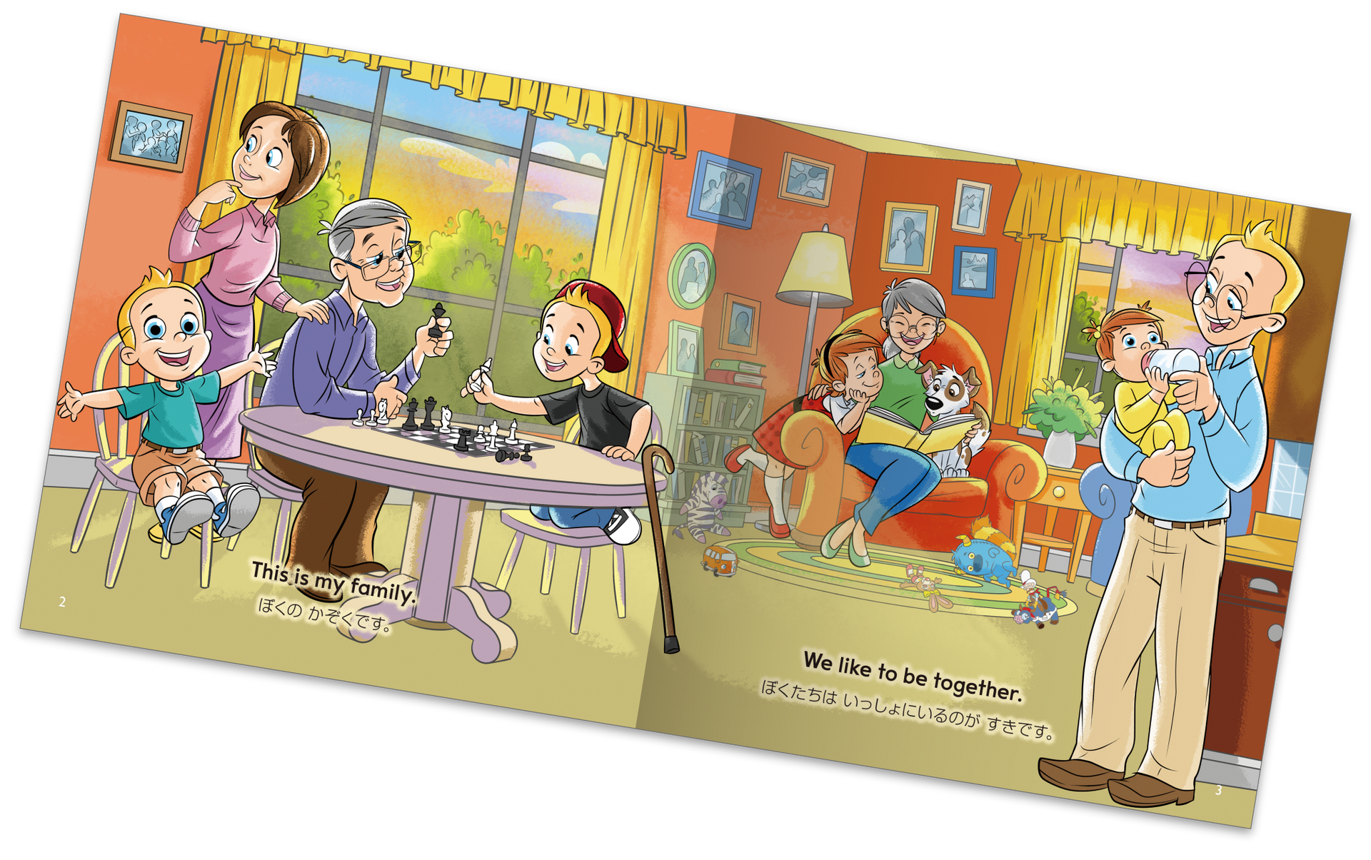Trong mỗi cuốn sách, nội dung tiếng Anh được in song song với nội dung tiếng mẹ đẻ, giúp người đọc dễ dàng hiểu và đối chiếu giữa hai ngôn ngữ. Người lớn có thể đọc to cuốn sách theo một trong hai ngôn ngữ, hoặc bật giọng đọc tiếng Anh có sẵn lên, lật từng trang sách và cùng thưởng thức với bé. Chắc chắn bé sẽ thích thú với những trải nghiệm mà cuốn sách mang lại. Với định dạng song ngữ, cha mẹ và người trông trẻ cũng có thể học thêm các từ vựng tiếng Anh nếu muốn.